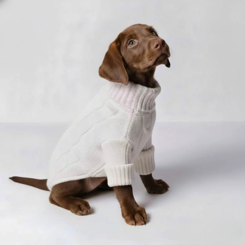 passionnée de cachemire, a voulu offrir aux chiens le même raffinement qu’à leurs propriétaires. Son ambition : que chaque compagnon à quatre pattes puisse lui aussi être le plus élégant de la pièce.